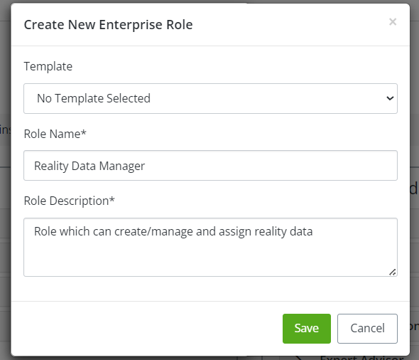 1. To create new "Reality Data Manager" role, we need to add required details which is shown in below snapshot. Then click on "Save" button.