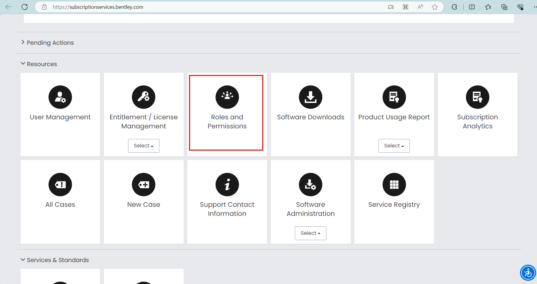5. Once user is added, then go to Subscription Services Portal and click on "Roles and Permissions" tile.