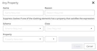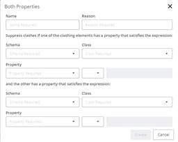 Suppress clashes if one of the clashing elements has a property that satisfies the expression <Exp1> and the other has a property that satisfies the expression <Esp2>