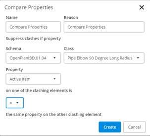 Suppress clash if one of the clashing elements has <Property Value> equal to / not equal to <Property Value> on the other clashing element.