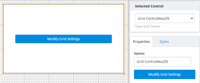 - Click Modify Grid Settings from the Properties tab or directly on the control.