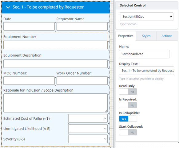 - Start Collapsed: Give the option to have the Section control start in the collapsed position.
