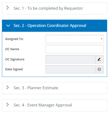 - Separate segments of the form into defined sections with titles.
