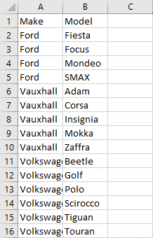 Note: The goal is when selecting a Make from the Make list, it activates which models appear in the model list.