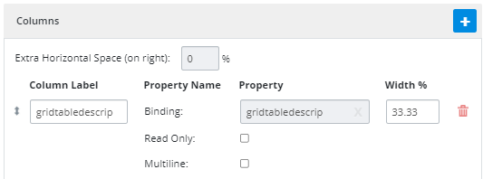icon to add a binding. To remove an existing binding, click the "X" icon. Note: Bindings are optional for the Column control.