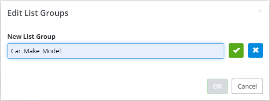 - To add a new List Group first give the List Group a name, then click
