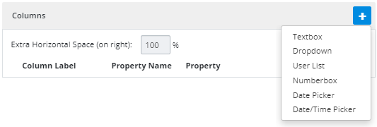 Note: The ‘Extra Horizontal Space’ feature above the column info will calculate the remaining percentage available to be used for addition columns.