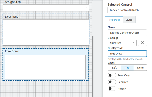 - Hidden: Hides the control in the form instances.