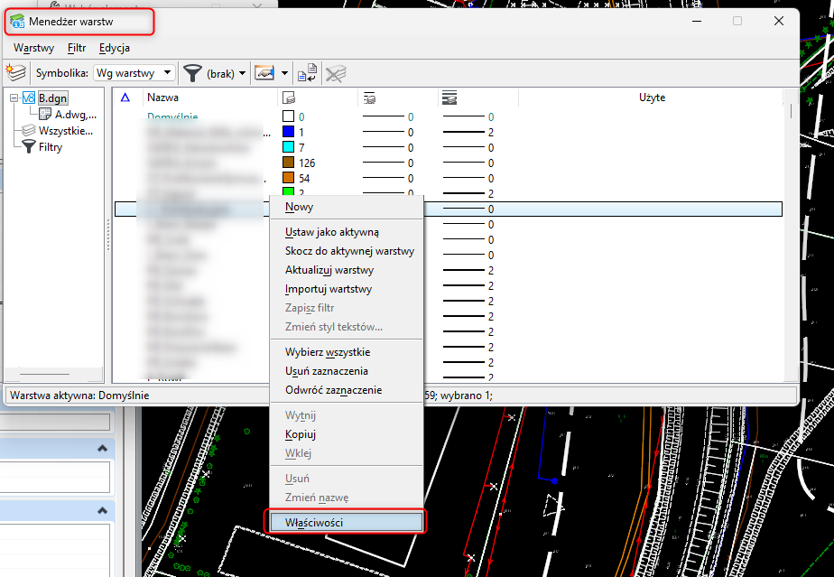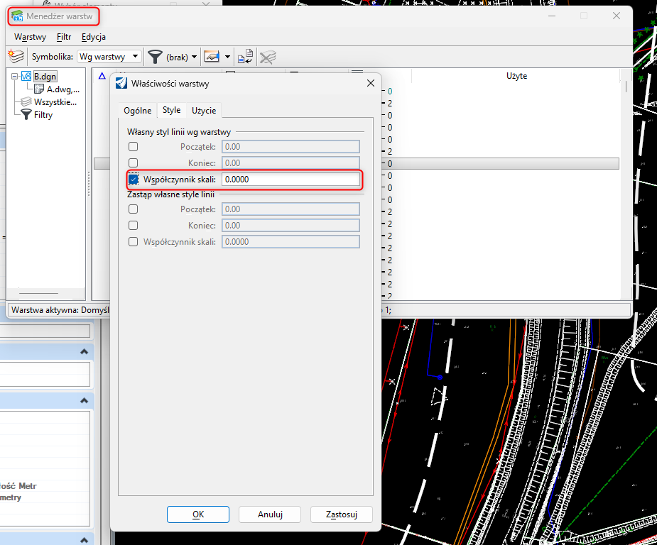 3. Zmiana skali linii w Level Manager [Menedżer warstw]: