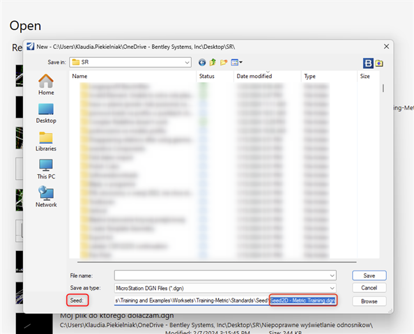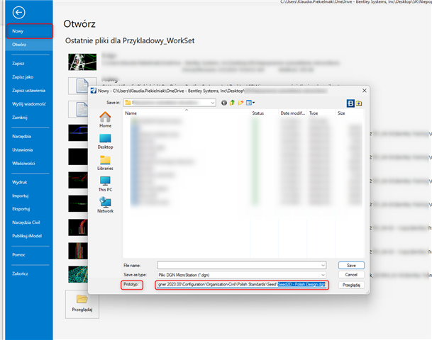 WSKAZÓWKA: Jeżeli chcemy, aby takie ustawienie modelu (punkt 1b.) zostało zachowane dla wszystkich nowych plików .dgn, to można te zmiany wprowadzić w pliku Seed [Prototyp], z którego program korzysta tworząc nowy plik: