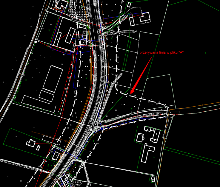 Kiedy otworzę mój plik "A" .dgn (lub .dwg) skala linii wyświetlana jest prawidłowo - linia jest przerywana. Kiedy natomiast dołączę ten plik jako odnośnik/referencja w nowym pliku "B", skala linii się zmienia i moja linia wygląda na ciągłą, a nie przerywaną: