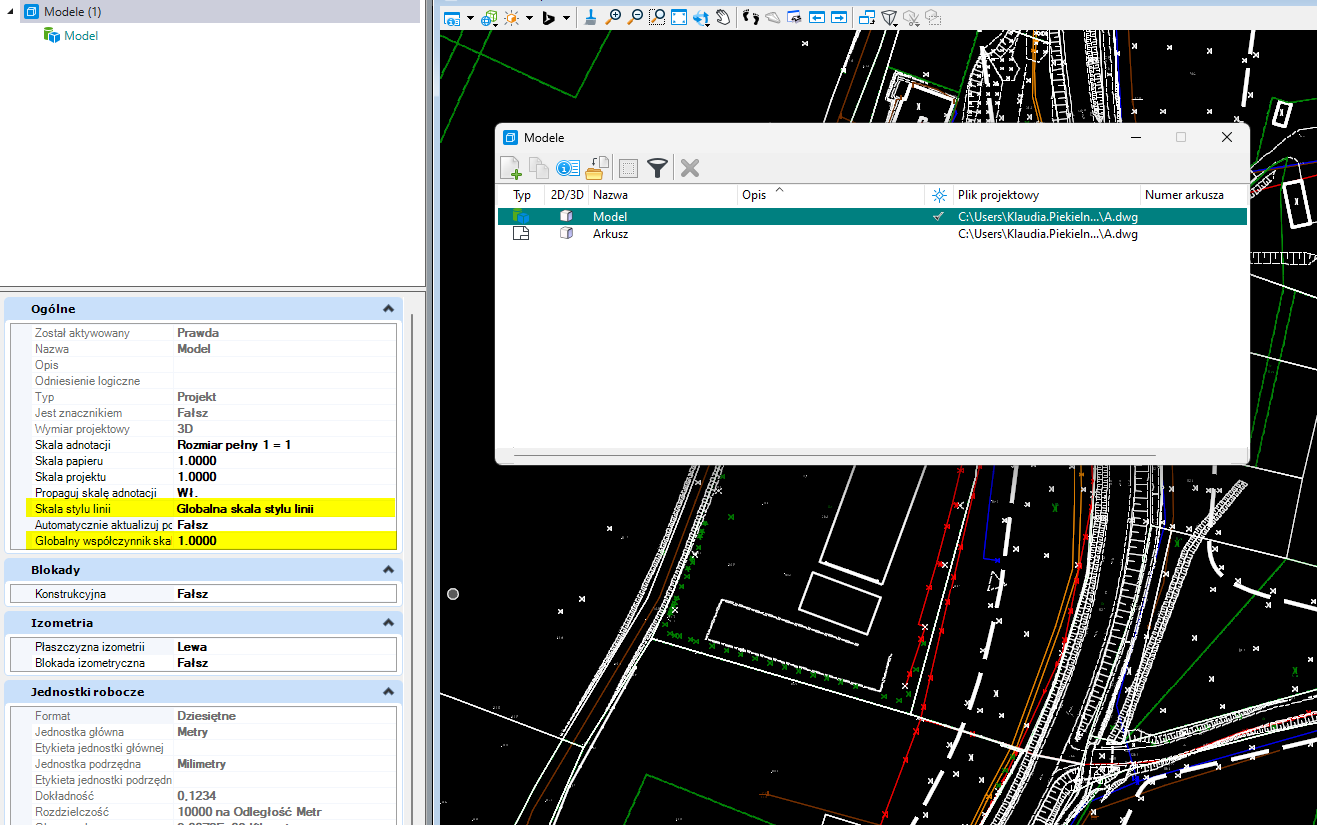1. Zmiana "Global LineStyle Scale [Skala stylu linii]: