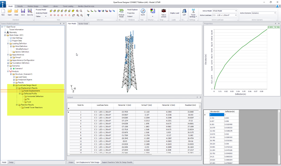 The structures that are analyzed with Euro code will have a separate table and graph to interpret the design forces and results in the Tower Model Explorer. See below figure.