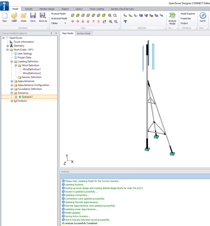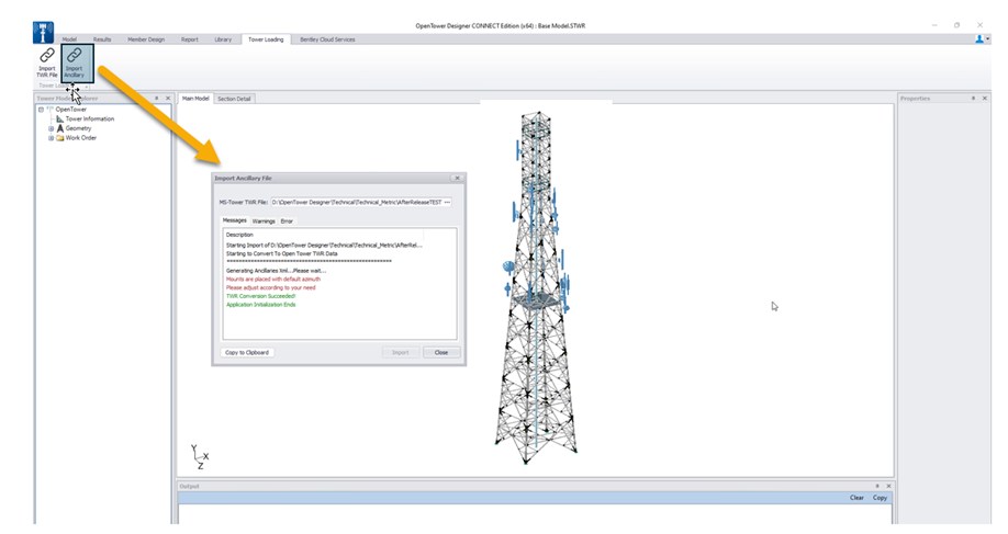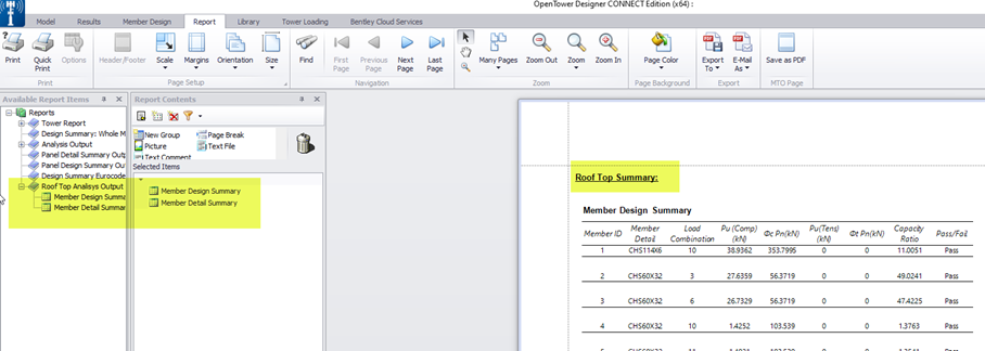 OpenTower Designer is now able to perform Analysis and Design of rooftop structures which are modelled as a Single UDP panel in MStower. Taking advantage of the Mount Frame Analysis Engine the software can do a SA of the model imported from MStower. The same solution can also be used for reinforcement Monopole.