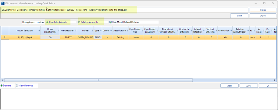The Ancillary Rotation is now reported in a CSV format in the same directory where the Tower file is saved as <<TowerName>>AncillaryRotation.csv