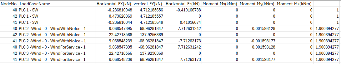 To allow foundation assessment with gusted forces, the reactions for all Load Combinations are not reported in CSV format in the same directory where the Tower file is saved as <<TowerName>>SupportReactionGen.csv.