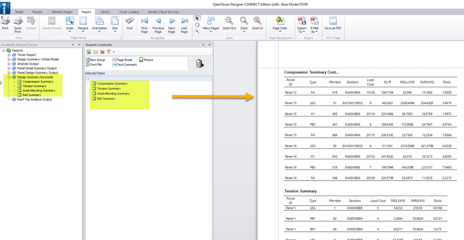 For Eurocode a curated Report format is designed to show the governing Load Case.