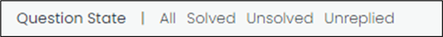 Filter by question to view solved, unsolved and questions without a reply. Note: The content options are displayed according to the permissions you are assigned in the forum.