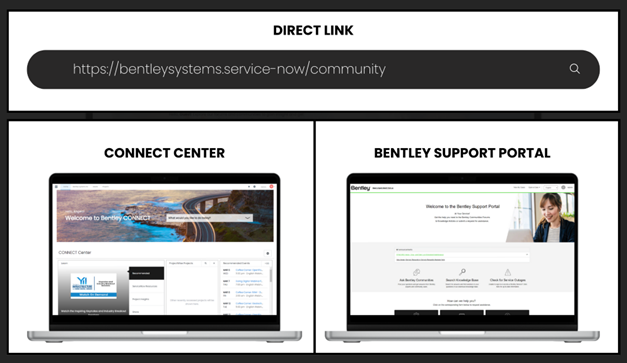 Access to Bentley Communities is not limited to the direct link; it's also available through the CONNECT Center and the Bentley Support Portal.
