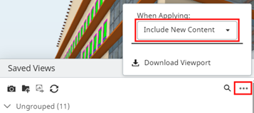 [Note: When updating the target iModel, the Saved View settings in the source iModel must be set to "Include New Content" (this is the default setting).]