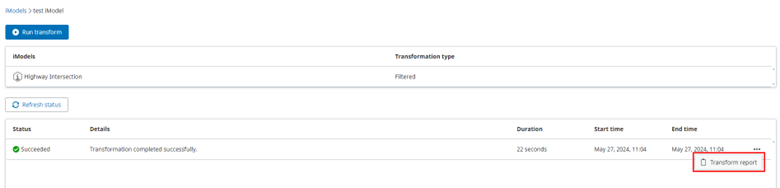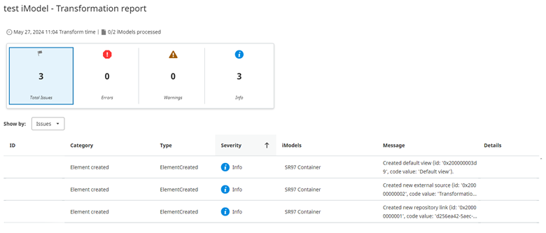 At this point, clicking the Create button creates an empty iModel. You will then be presented with the transformation details page.