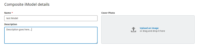 After selecting the Composite iModel option, you are asked to give your iModel a name along with an optional description and image.