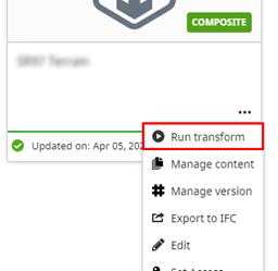 Similar to the Sync reports for connected iModels, selecting the context (3 dot) menu on a Composite iModel, and selecting Manage Content opens a similar UI. This allows you to re-run the transform, as well as select the report from the context menu for each transformation run.