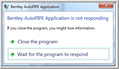 Bentley AutoPIPE Application is not responding