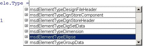 Das macht aber deshalb Sinn, weil ein Kreis mathematisch gesehen nur ein Spezialfall einer Ellipse darstellt und deshalb durchaus als Ellipse behandelt werden kann. Der VBA Editor hilft auch hier wieder bei der Auswahl, die möglichen Elementtypen werden zur Auswahl angeboten: