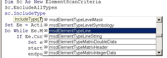 2. Wir fügen nur die Linien für eine Suche hinzu:Sc.IncludeType msdElementTypeLine