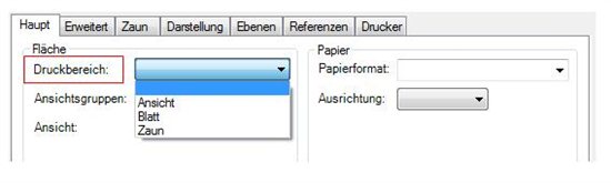 Im Druckstile finden Sie die Einstellung unter dem Haupt TAB -> Fläche. Der Druckbereich und die Ansicht können entsprechend selektiert werden