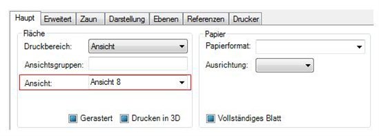 Im Druckstile kann die Ansicht unter Haupt TAB -> Fläche -> Ansicht spezifizieren werden.
