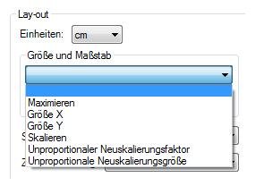 Im Druckstile spezifizieren Sie die Einstellung Größe der Skalierung und den unproportionalen Neuskalierungsfaktor unter dem Haupt TAB -> Lay-Out