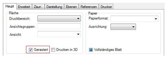Im Druckstile können Sie Gerastert unter dem Haupt TAB -> Fläche selektieren