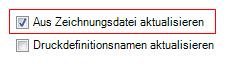 Im Druckstile können Sie Aus Zeichnungsdatei aktualisieren unter dem Erweitert TAB selektieren.