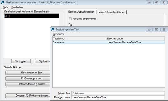 Standardmäßig ermöglicht Ihnen eine MicroStation Plotkonvention nicht das Aneinanderreihen von Variablen. Unter Verwendung eines Benannten Ausdrucks ist dies möglich.