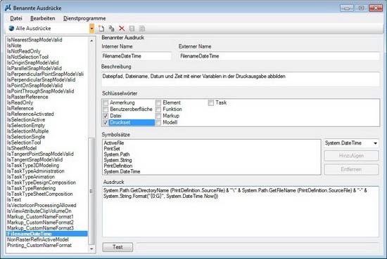 Unter Symbolsätze fügen Sie “ActiveFile, PrintSet, System.Path, System.String, PrintDefinition, System.DateTime” hinzu
