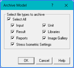 Opening an AutoPIPE APC compressed file, and pressing 'OK', will extract all of the compressed file types into a new folder by the same name, and open the model. The ability to open a compressed model file is especially useful when sharing a model between multiple users. This is important as AutoPIPE will use the same files (default or customized) that were used to model, analyze, and generate reports.