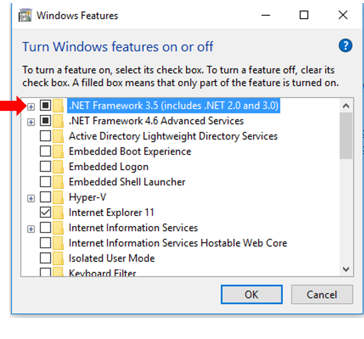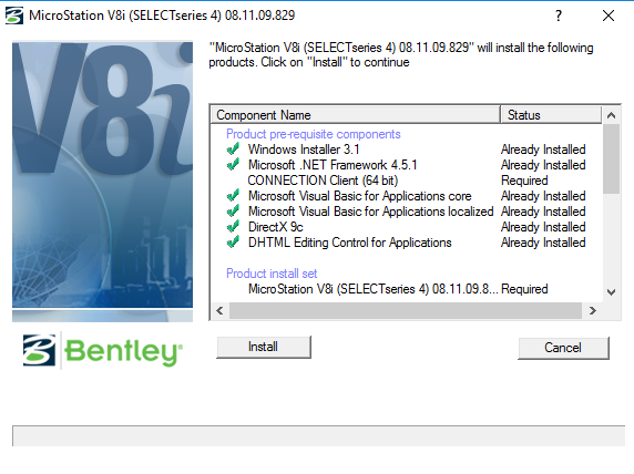 Installing this Windows component will allow the installation to proceed and also allow MicroStation to successfully run. This is an older component and generally is not required in the Windows 10 environment but is a requirement of MicroStation V8i Select Series.