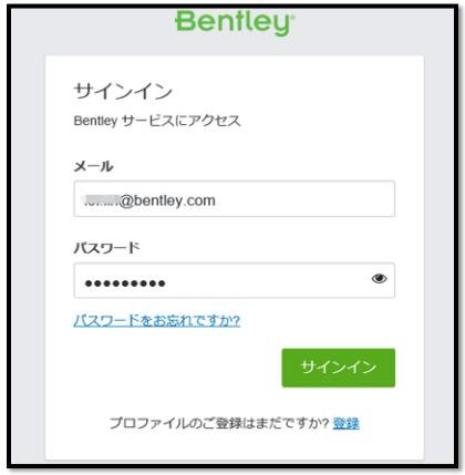 ウェブブラウザのアドレス欄にhttps://softwaredownloads.bentley.com/ja/を入力(お気に入りに追加するのがお勧め)、直接にBentleyソフトウエアダウンロードサイトにアクセスします。Bentleyユーザーアカウントはサインインされていない場合は、サインインが求められます。