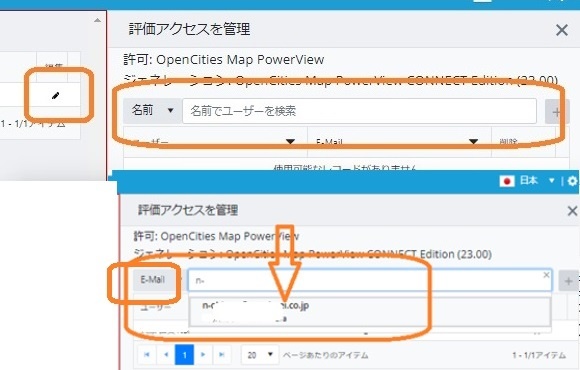 | 5 | 名前を「Email」変更し、ユーザー管理サイトにユーザーメールアドレスの一部を入れてると、該当する候補が表示されます。その候補から選択します。 | |