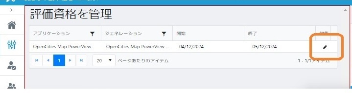 | 4 | デフォルトの場合は、試用権限に紐付いているユーザーアカウントがなく、組織管理者はユーザーアカウントに使用権限を付与する場合、該当プロダクト行の左側にある「編集」をクリックします。 | |
