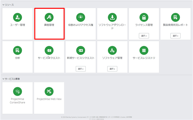 | 2 | Subscription Services Portalにて, 資格管理のタイルをクリックします。 | |