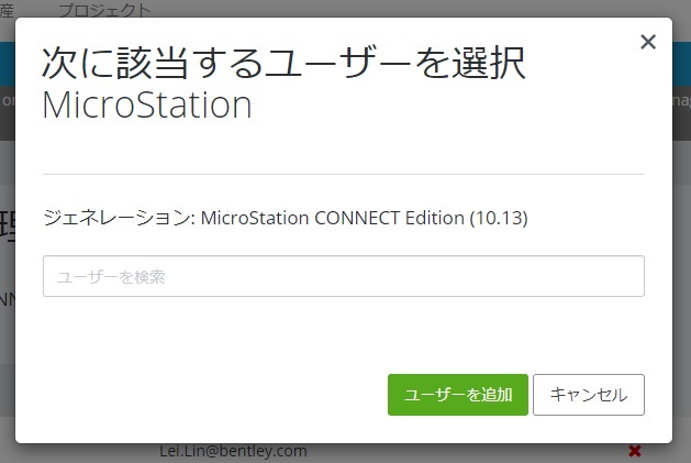 該当ユーザーを選択します。 テキストフィールドへ自由入力による検索で柔軟にフィルタリングができる。そして、ユーザーを追加をクリックし、確定します。 |