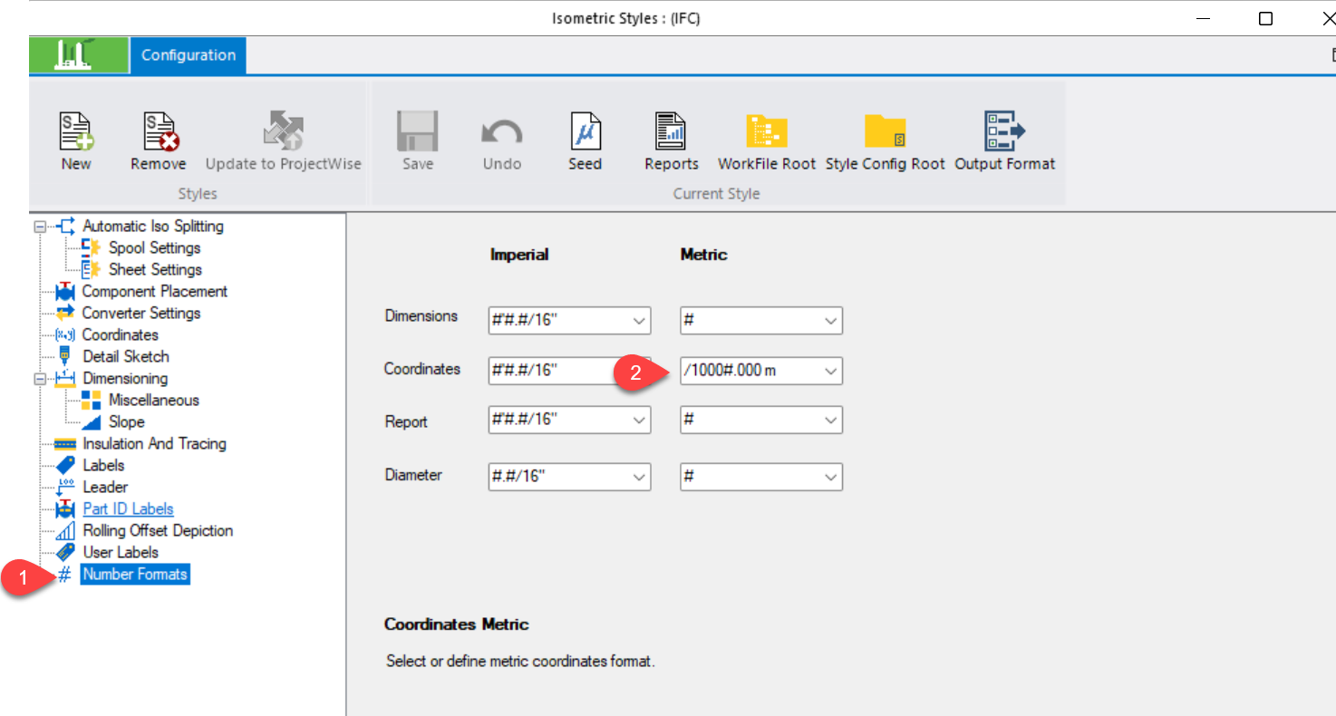 4.点击数字格式,选择坐标,将公制坐标按照如下格式修改: /1000#.000 m