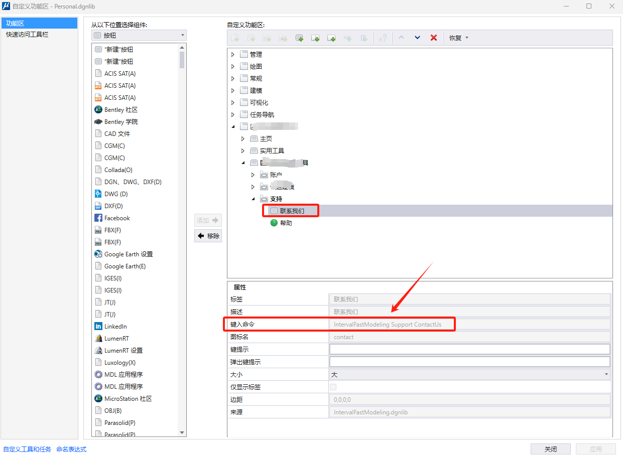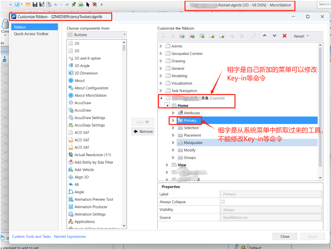 5. 这样就可以对这个 .dgnlib文件进行Ribbon的自定义了。