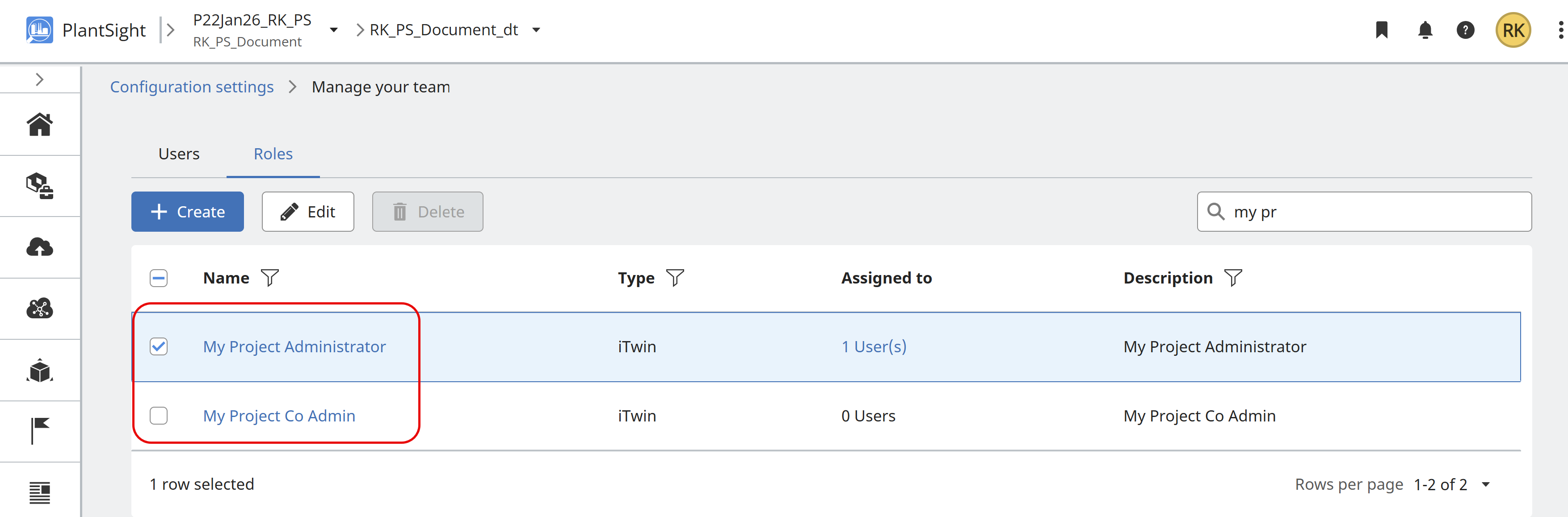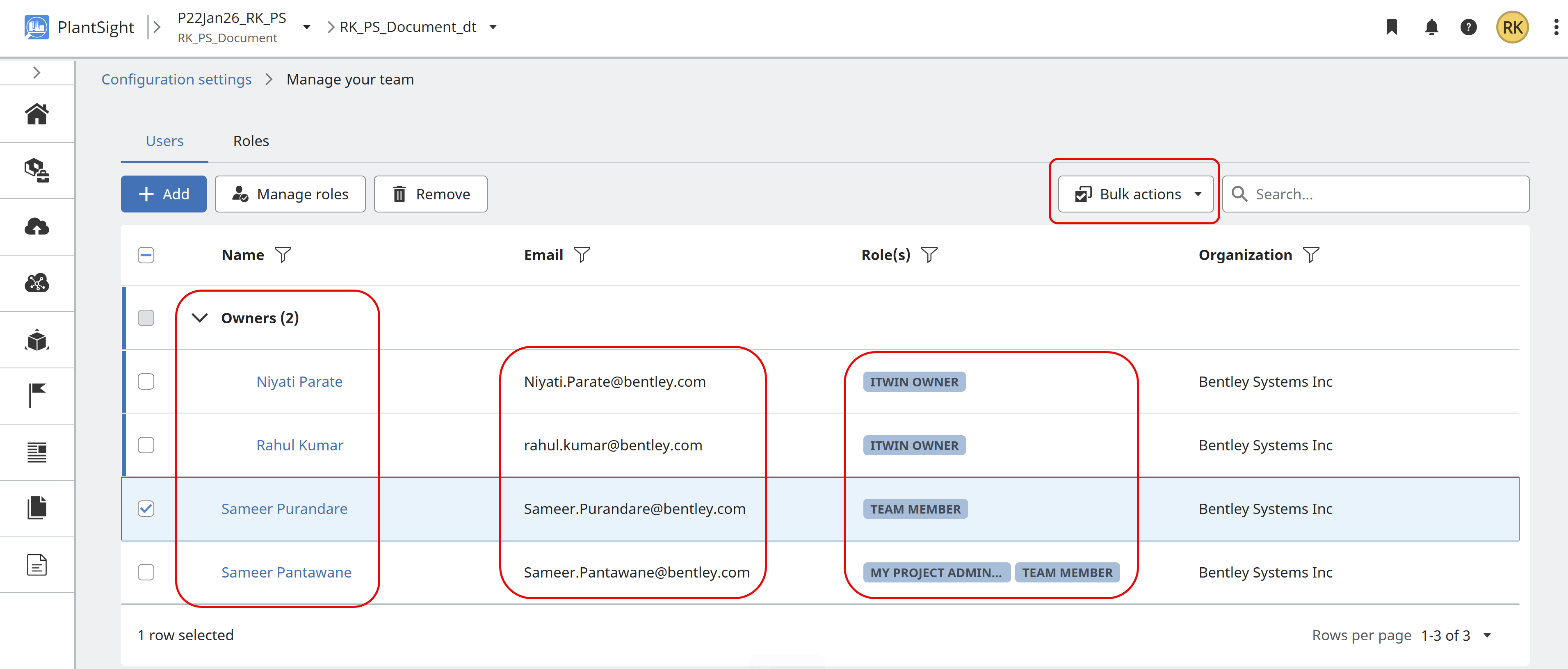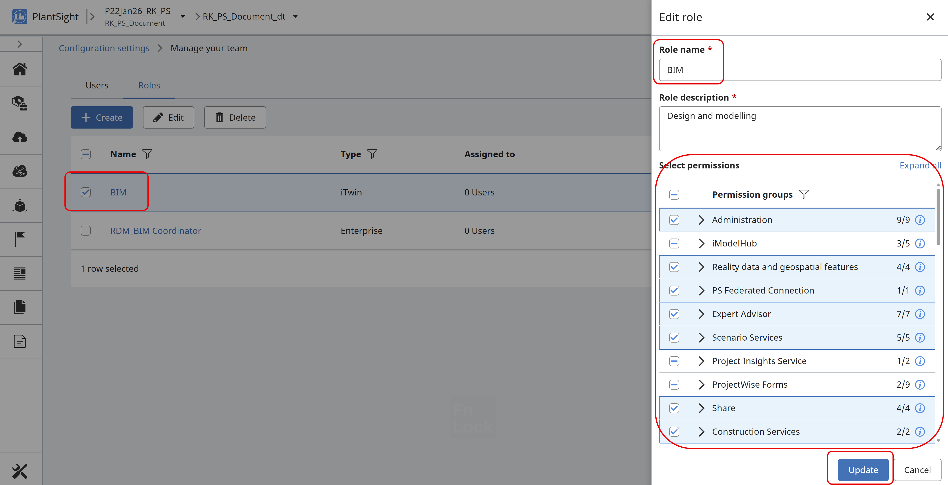 Users requiring access to the Administration settings in PlantSight, must have the role of CONNECT Services Admin set in the usermanagement.bentley.com for your organization. The person within your organization with permissions to manage Bentley Users, is required to perform the role change. The role assigned to the user is CONNECT Services Admin.