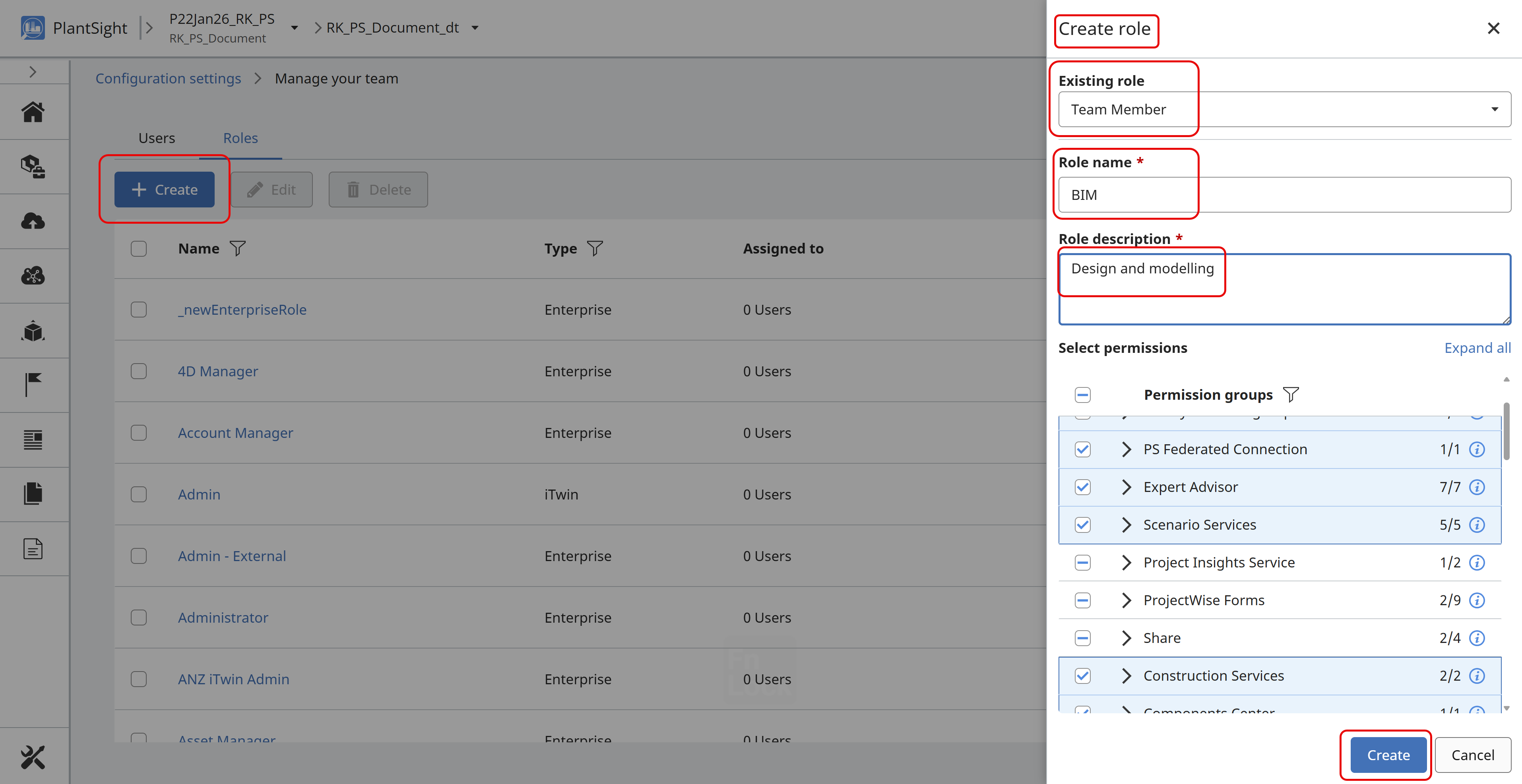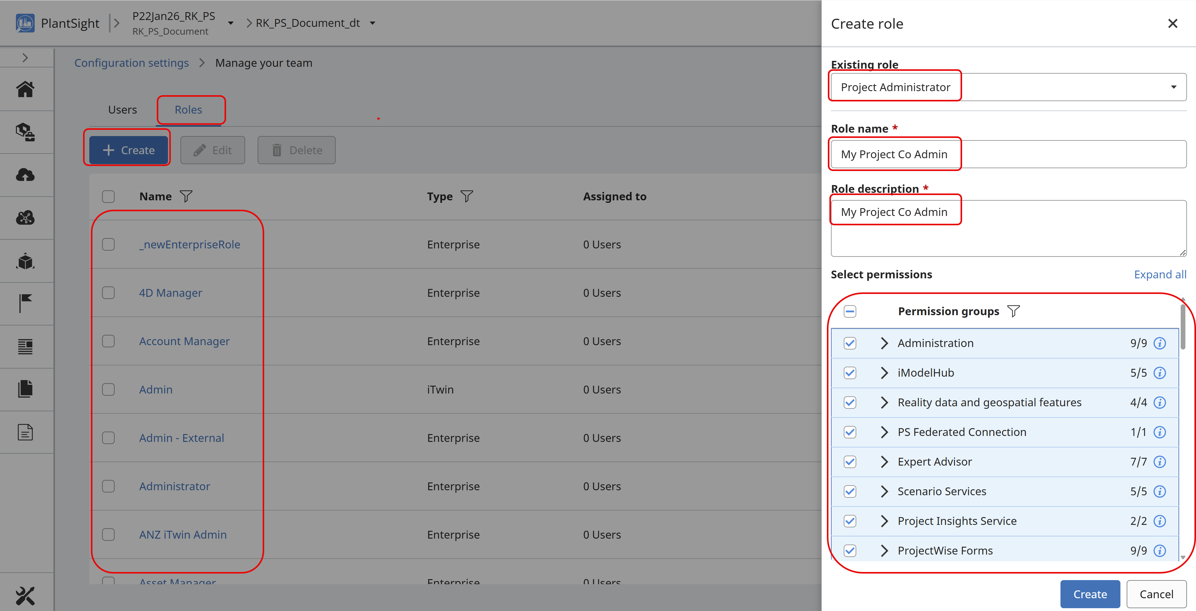 Enterprise Roles: These are Bentley supplied enterprise roles and cannot be edited or deleted.
