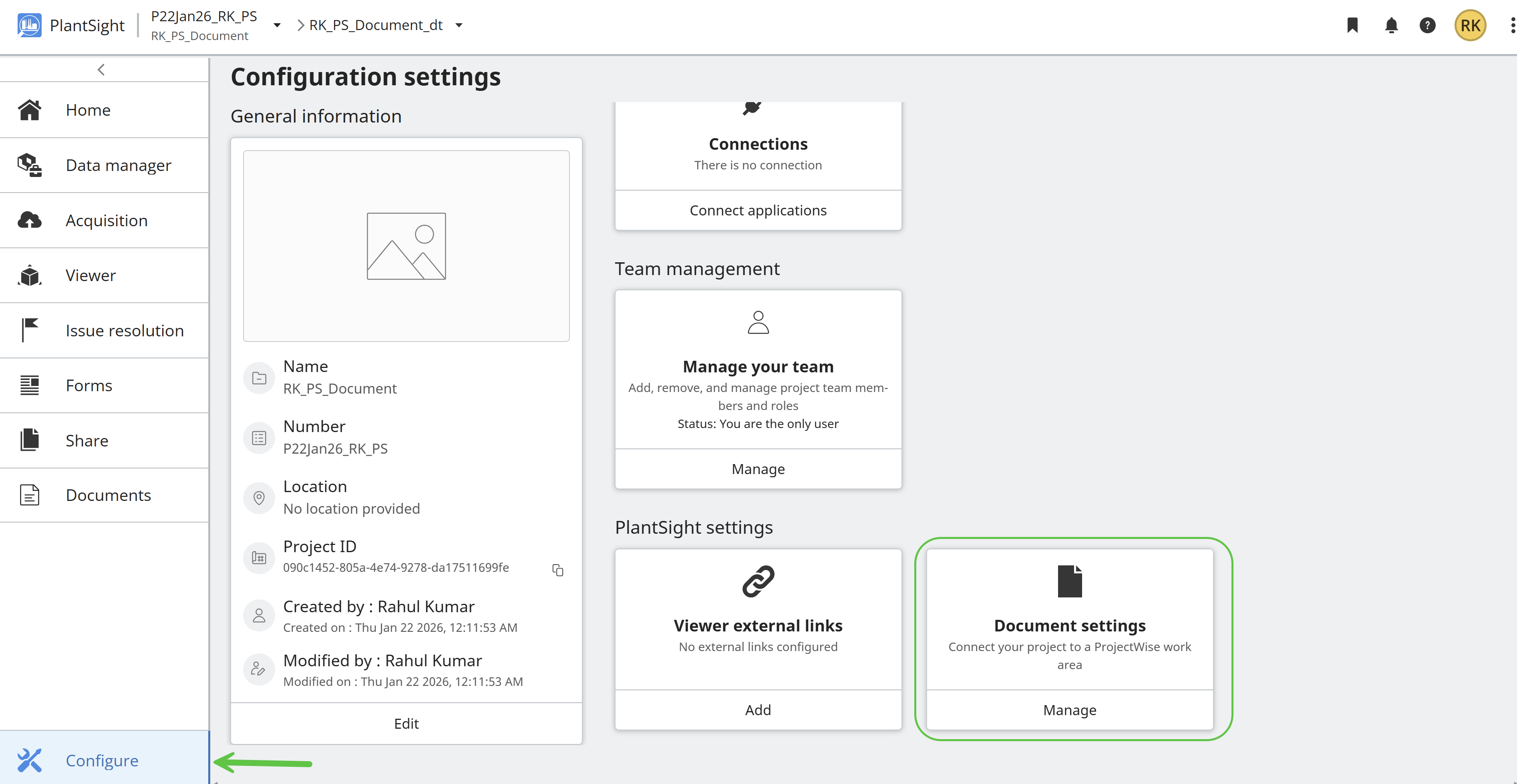 The Project Role Management page has several areas that need review. using 'Configuration Setting' Open 'Manage your Team' option