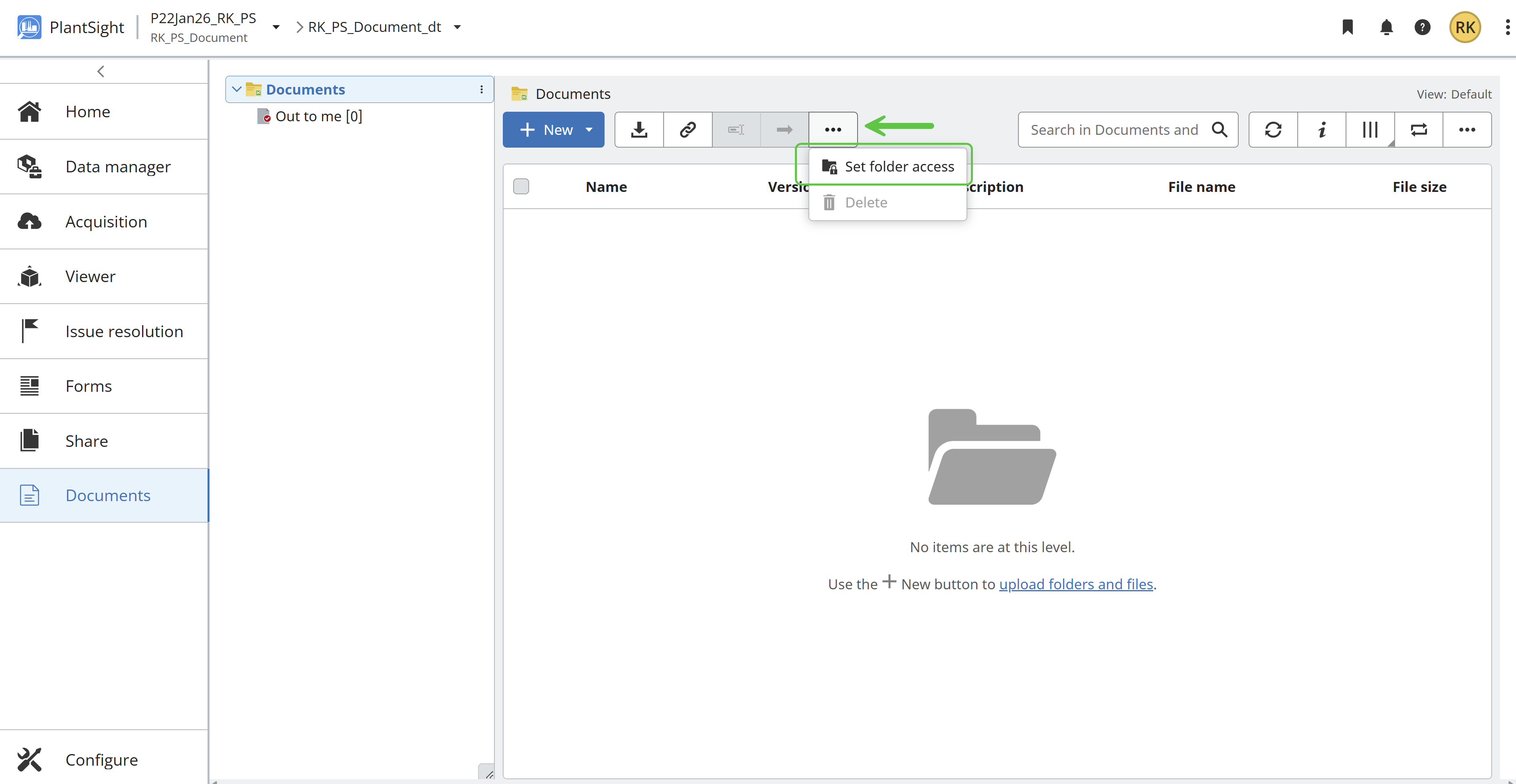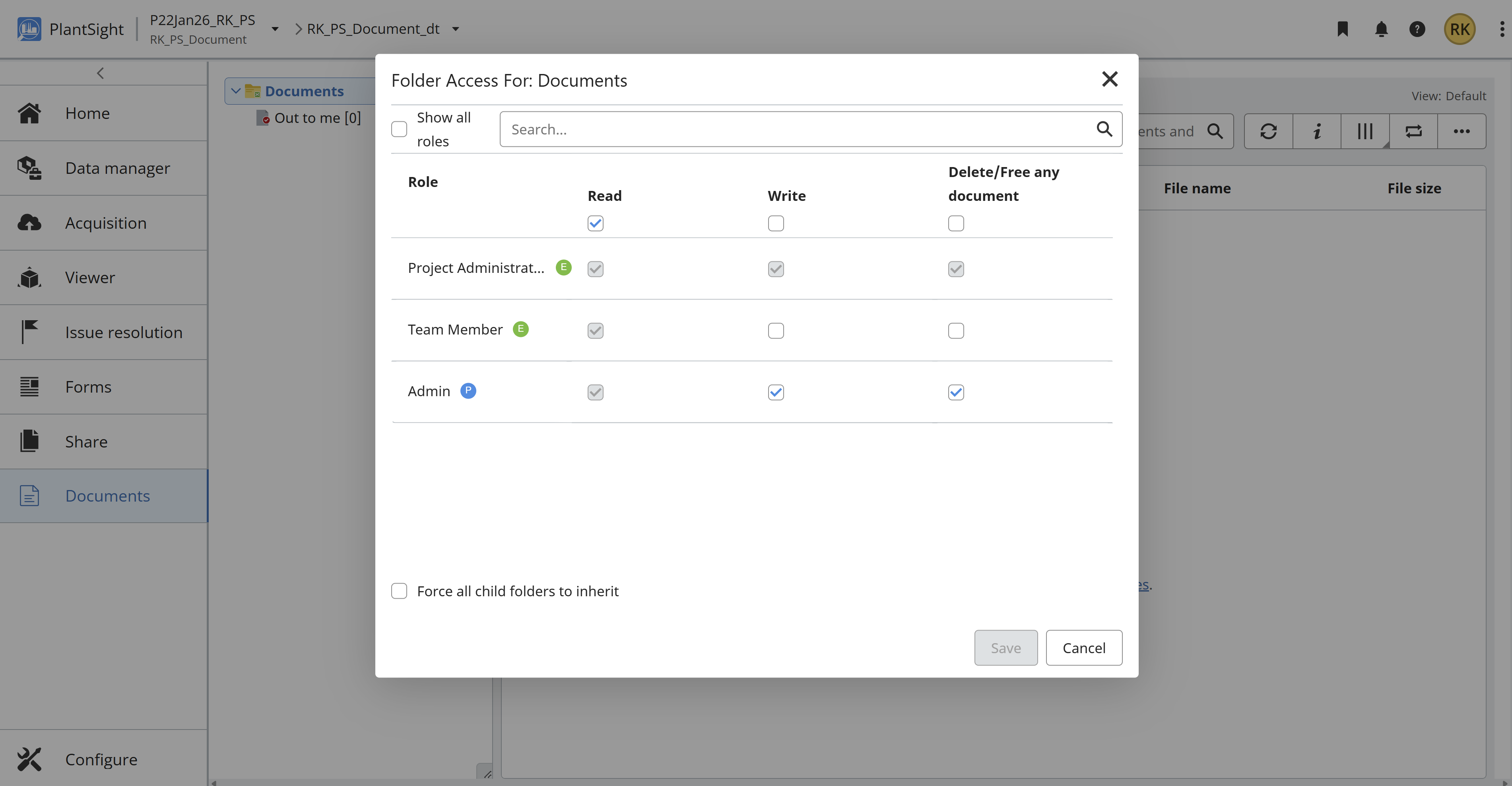 In PlantSight , RBAC permission of Documents required to access by an Organization and its admin and non-admin participants. Below option to access.